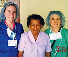 Technicians Katherine Burleson, left, and Amy Ball, both of Parker Cornea in Birmingham, AL, with a patient in Granada.
