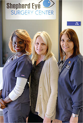 Danielle Daniel, Kim Heikkinen, and Yanet Russell (above) represent 10, 30, and 20 years with Shepherd Eye Center, respectively.