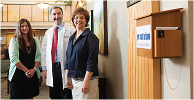 Asheville Eye Associate’s marketing director, Katy Farlow joins Robert Wiggins Jr., MD, MHA, and Denise Fridl, COT, COE, OCS.