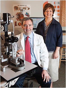 Robert Wiggins, Jr,. MD, MHA and Denise Fridl, COT, COE, OCS in an exam room.