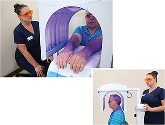 Rebecca Stidham, certified dermatology technician, performs Blu-U Light therapy on a patient at The Eye Associates in Bradenton, Fla.